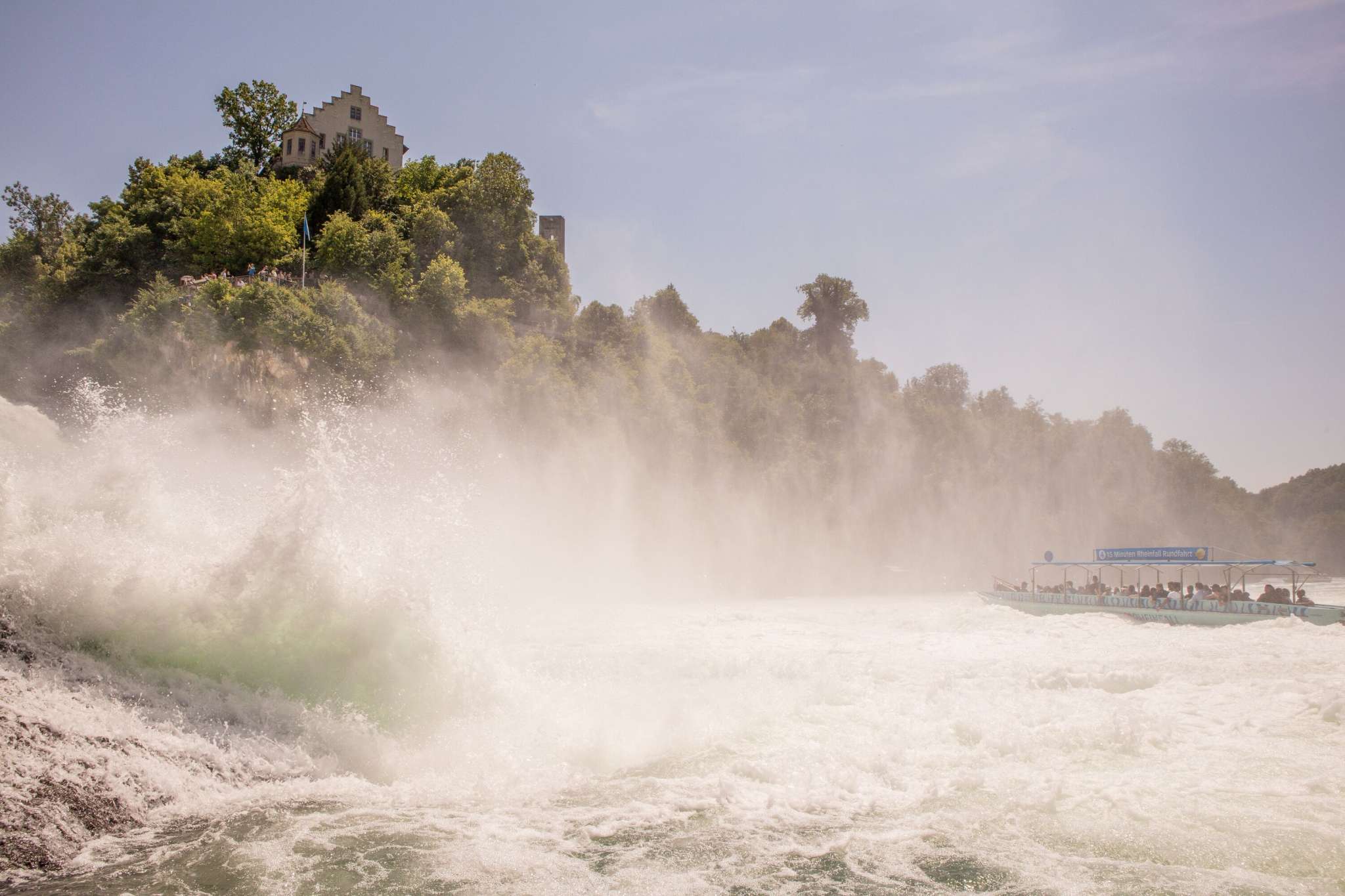 Zuerst erfahren Sie auf einer geführten Tour (Dauer: 1 Stunde) Interessantes und Erstaunliches über den grössten Wasserfall Europas. Anschliessend erleben Sie die tosende Wasserkraft hautnah auf der eindrücklichen Bootsfahrt zum Mittelfelsen (Dauer: ca. 20 Minuten) – einfach atemberaubend!