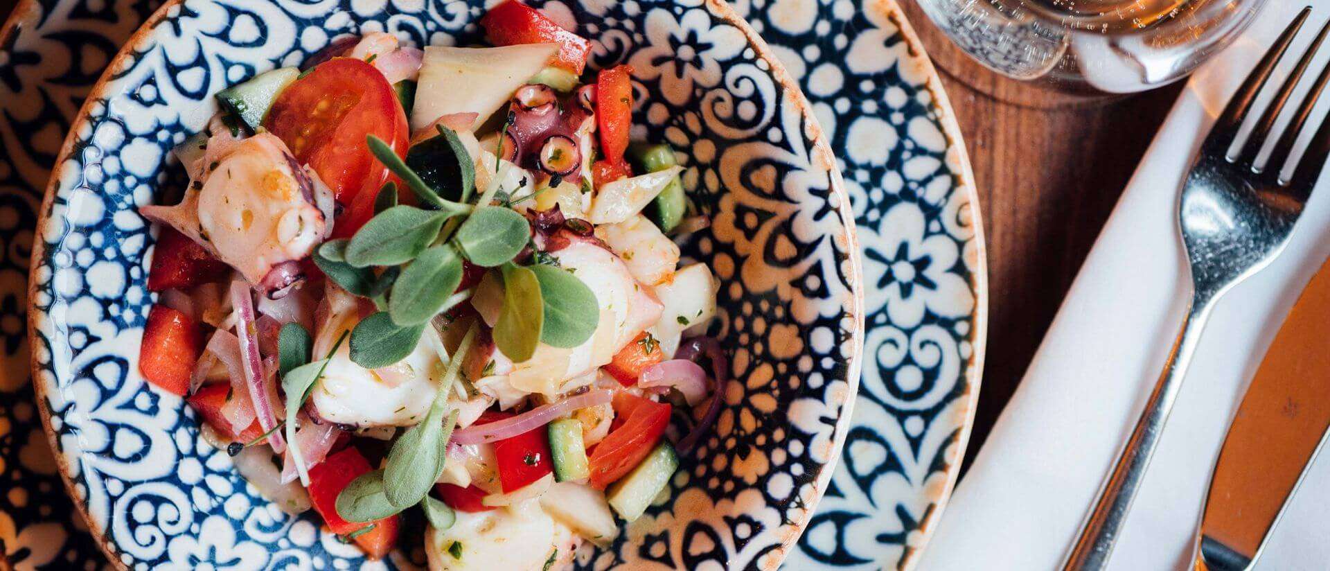 Mediterrane Küche mit bestem Fleisch, Klassiker vom Grill, Fisch, Wein und Bier.
