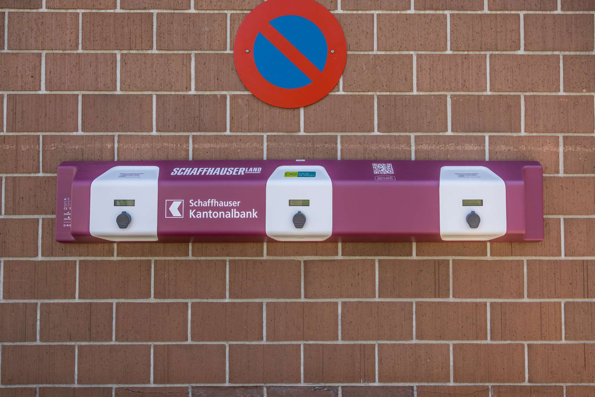Die Ladestation liegt direkt bei der Badi Hallau.