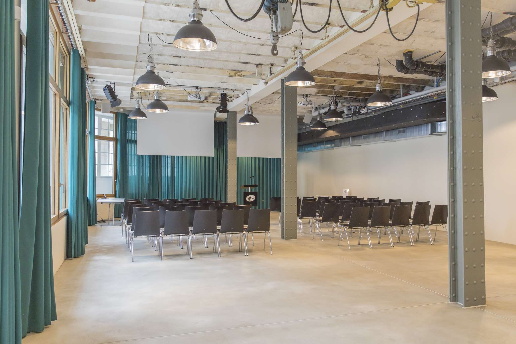 Die Eventlocation auf dem SIG Areal am Rheinfall steht Ihnen für eine vielseitige Nutzung zur Verfügung. Ob Workshop, GV, Seminar oder eine private Feier – das einmalige Ambiente des Raums mit Industrieflair und moderner Ausstattung wird Sie begeistern. Es stehen zwei Beameranlagen, Rednerpult mit Mikrofon, Flipchart, Whiteboard und WLAN zur Verfügung. Die Bestuhlung des Saals erfolgt nach Ihren Wünschen. Für das Catering während Ihres Anlasses bietet Ihnen das angrenzende Restaurant Grünerbaum ein vielfältiges Angebot und geht gerne individuell auf Ihre Wünsche ein.