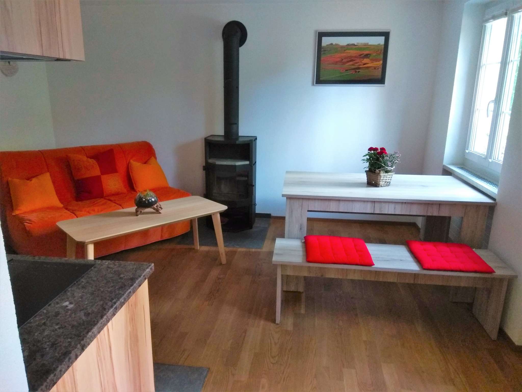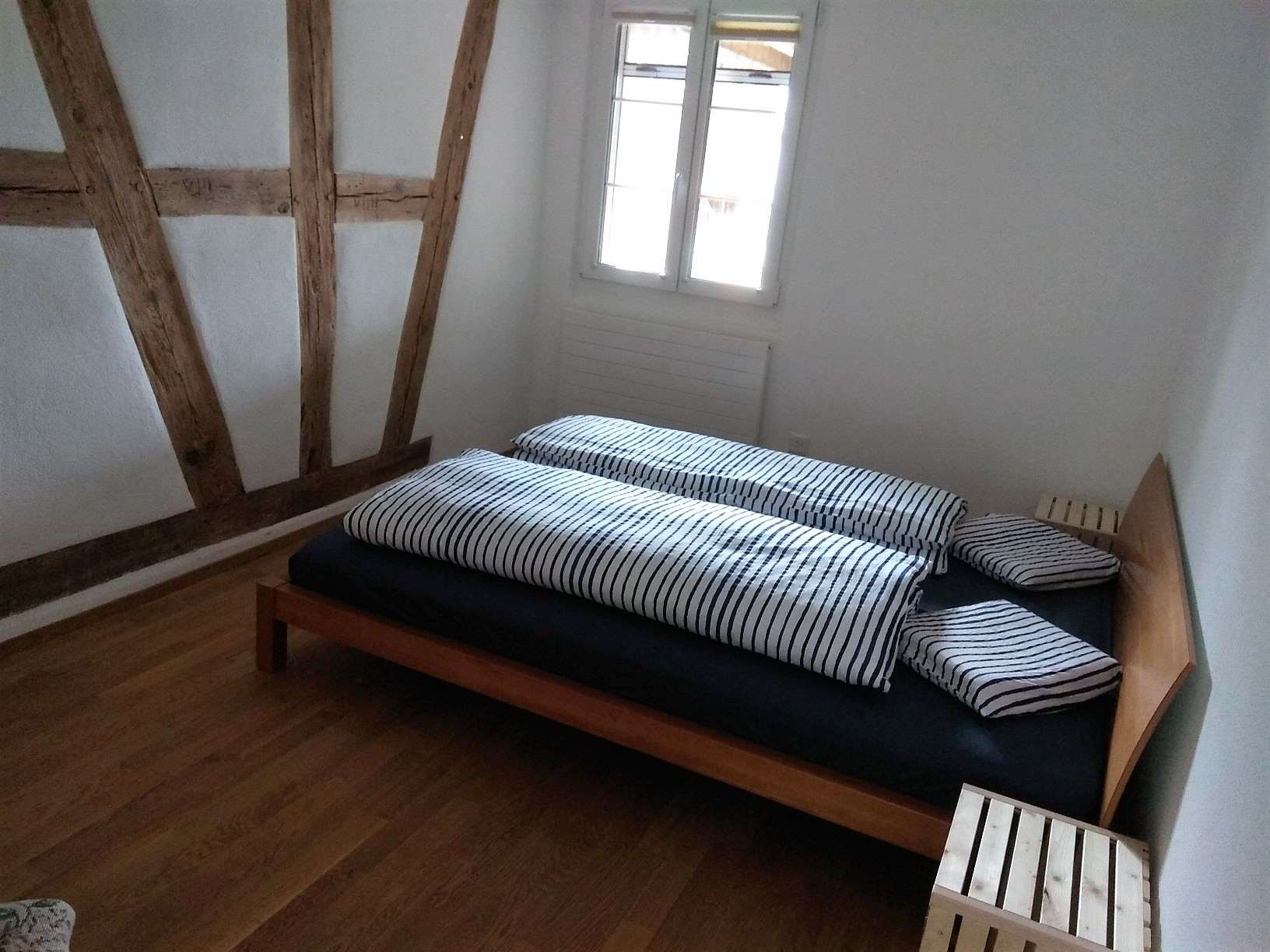Kleine 2 Zimmer-Ferienwohnung in Siblingen. Auf Wunsch bieten wir auch Frühstück an. Die schmucke Wohnung hat alles was es braucht, Küche (mit Backofen, Kaffeemaschine, Wasserkocher), Bad, Schlafzimmer für 2 Personen, Wohn-Esszimmer mit einer Schlafcouch für 2 Personen. Es steht auch ein kleiner, eingezäunter Gartenbereich mit Tisch und Stühlen zur Verfügung.