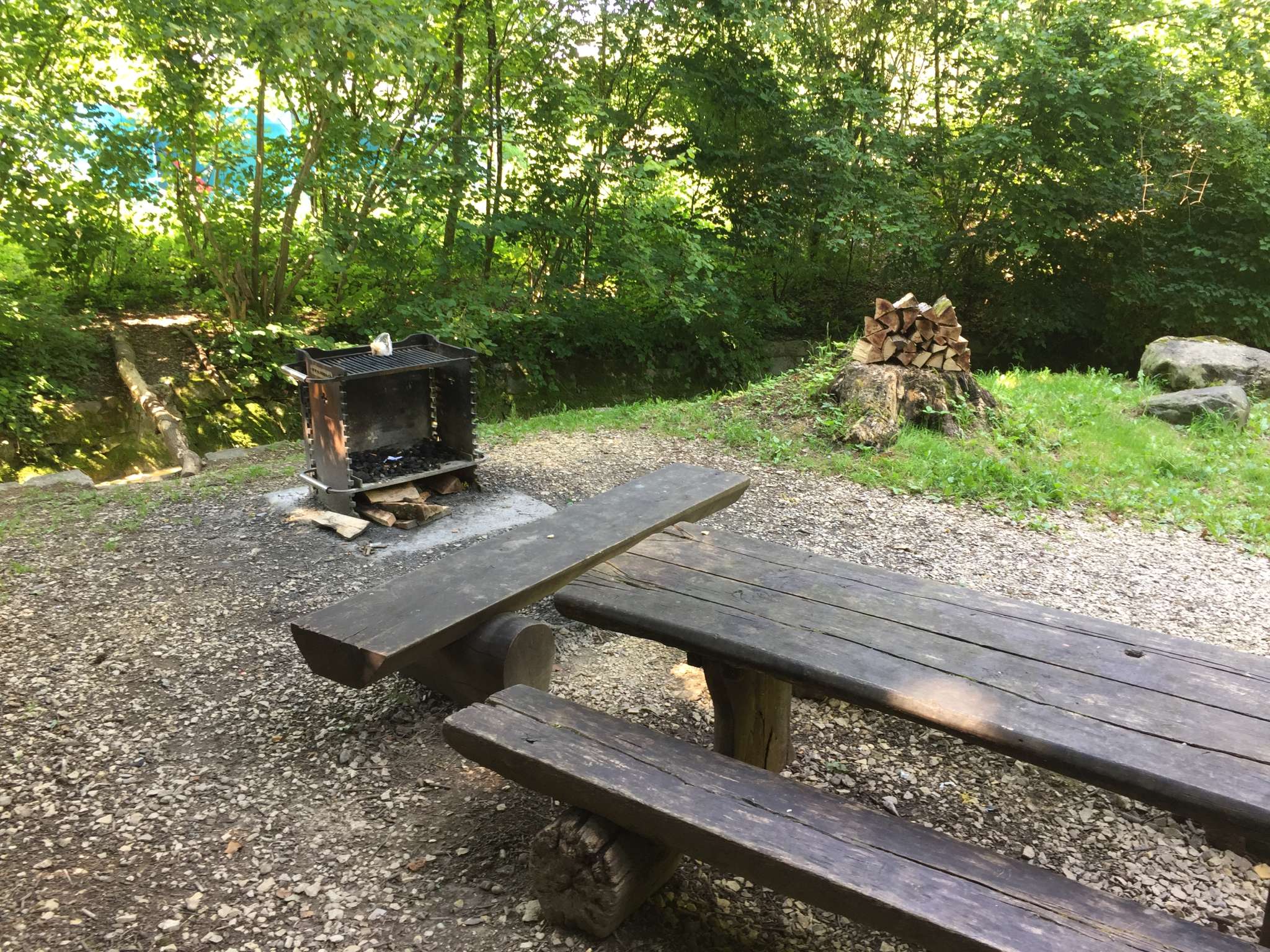 Der grosszügige Grillplatz Felsentäli umfasst einen Grill eine Feuerstelle und viele Tische sowie Bänke.