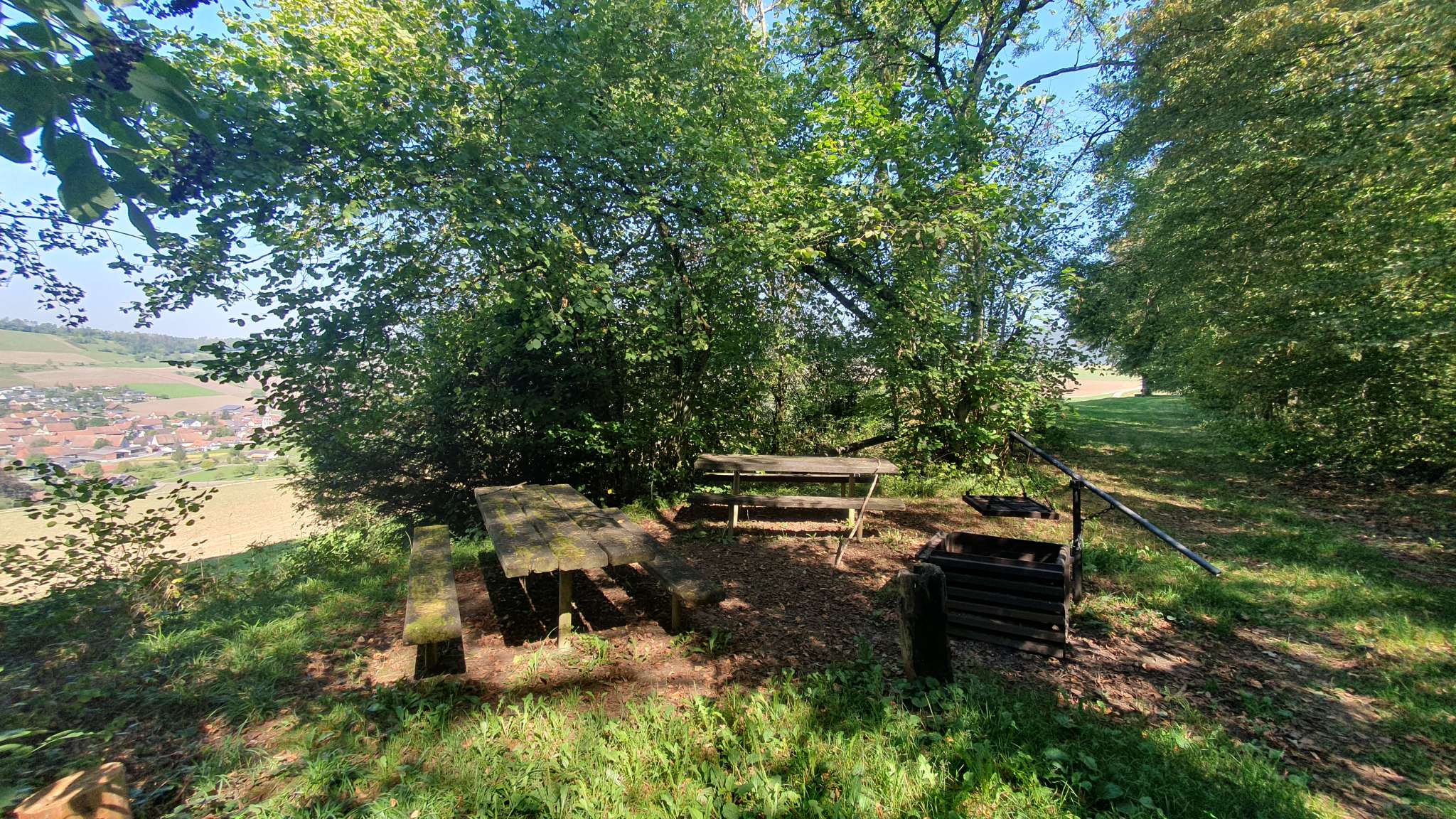Grosszügiger Grillplatz, welcher in einem kleinen Wäldchen versteckt liegt. Dieses befindet sich auf der Anhöhe oberhalb von Schleitheim und bietet einen tollen Ausblick über das Dorf.