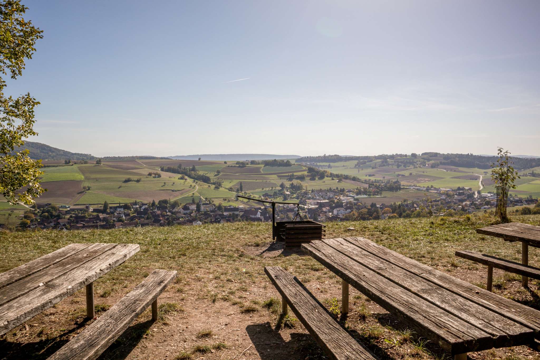 Die grosszügige Grillstelle, welche sich auf der Linken Talseite befindet, bietet einen wunderbaren Ausblick auf das Dorf Schleitheim.