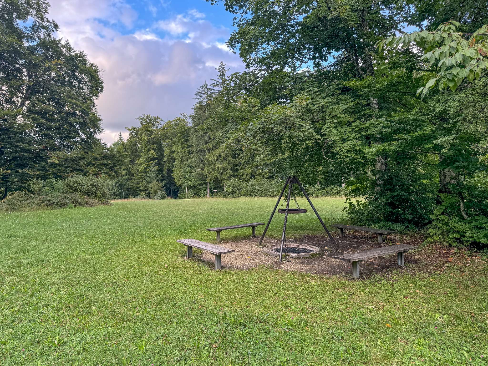 Auf einer grossen Wiese gleich beim Hagenturm hat es drei Feuerstellen mit Holzbänken.