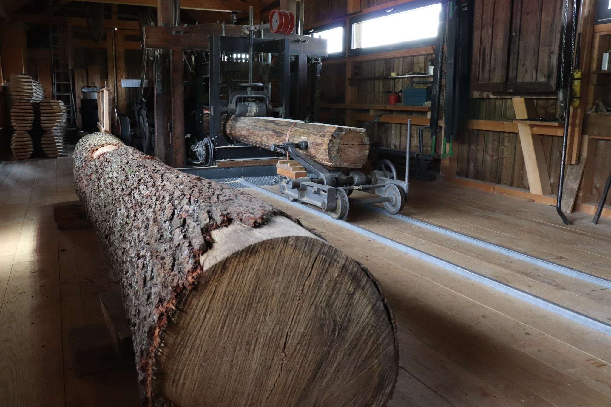 Tauchen Sie ein in die Welt der Technik vor 100 Jahren. Effizientes Sägen von Stämmen war erst dank der Elektrizität möglich. Angetrieben wurde und wird die Säge von einem wuchtigen 18 PS – Elektromotor. Der Antrieb, die grosse Transmission, der Vollgatter und die geniale Vorschubeinrichtung machen die Säge so speziell - sie ist ein Bindeglied zwischen den Einfachgattersägen, die mit Wasserkraft angetrieben wurden, und den modernen Sägewerken. Eine Handwerks-Ausstellung bietet Ihnen weitere Einblicke in alte Berufe. Erleben Sie eine Sägedemo in der Gattersagi!