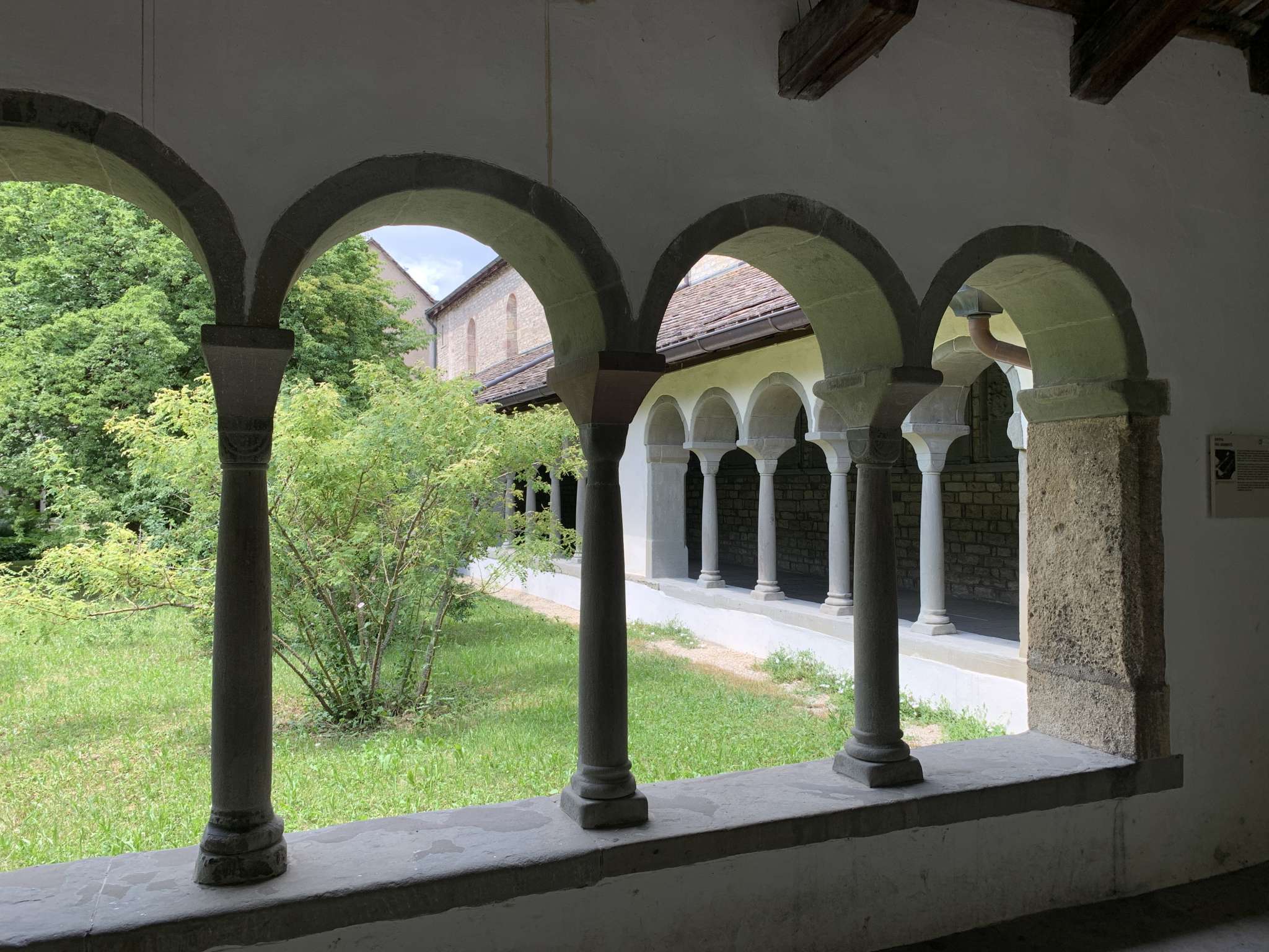 Der grösste Kreuzgang der Schweiz. Teils romanisch 12. Jh., teils gotisch 13. Jh., umschliesst er den romantischen, bezaubernden Kreuzganggarten, den sogenannten «Junkerfriedhof», in dem von 1582 bis 1874 hohe Schaffhauser Magistraten wie Bürgermeister, Ratsherren, Pfarrer und andere verdiente Bürger und Bürgerinnen beigesetzt wurden.