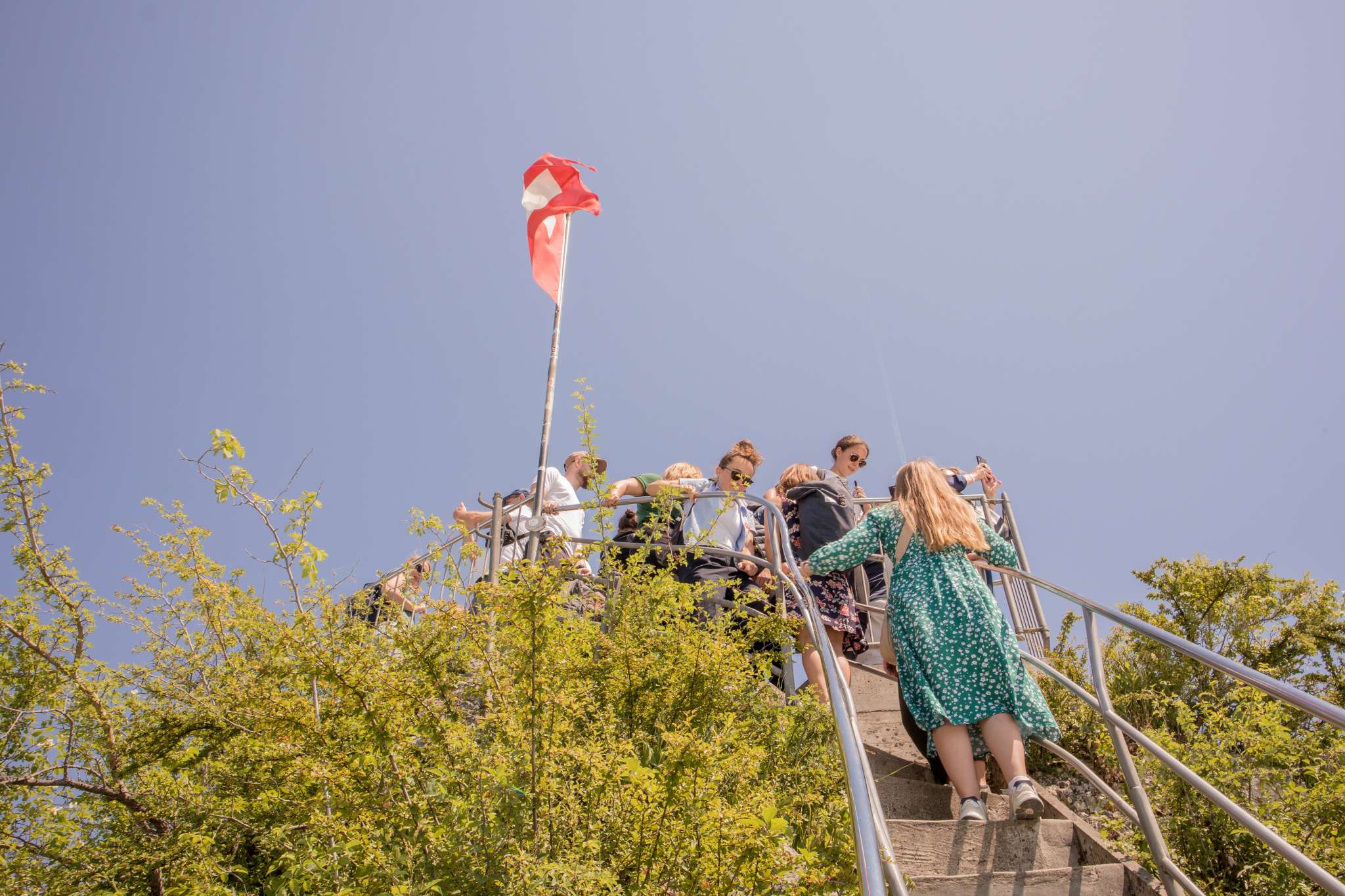 Die Fahrt zum Felsen und dessen Besteigung ist einer der Höhepunkt eines jeden Rheinfall-Besuches. Ab Schiffsanlegestelle Schlössli Wörth steuert der gewandte Kapitän das schmale Boot durch wilde, aufgepeitschte Wellen, legt mitten im Rheinfall an und entlässt seine Passagiere zum Aufstieg auf den Felsen. Hier bietet sich ein unvergleichliches Panorama umgeben von bis zu 700'000 Liter Wasser pro Sekunde.
