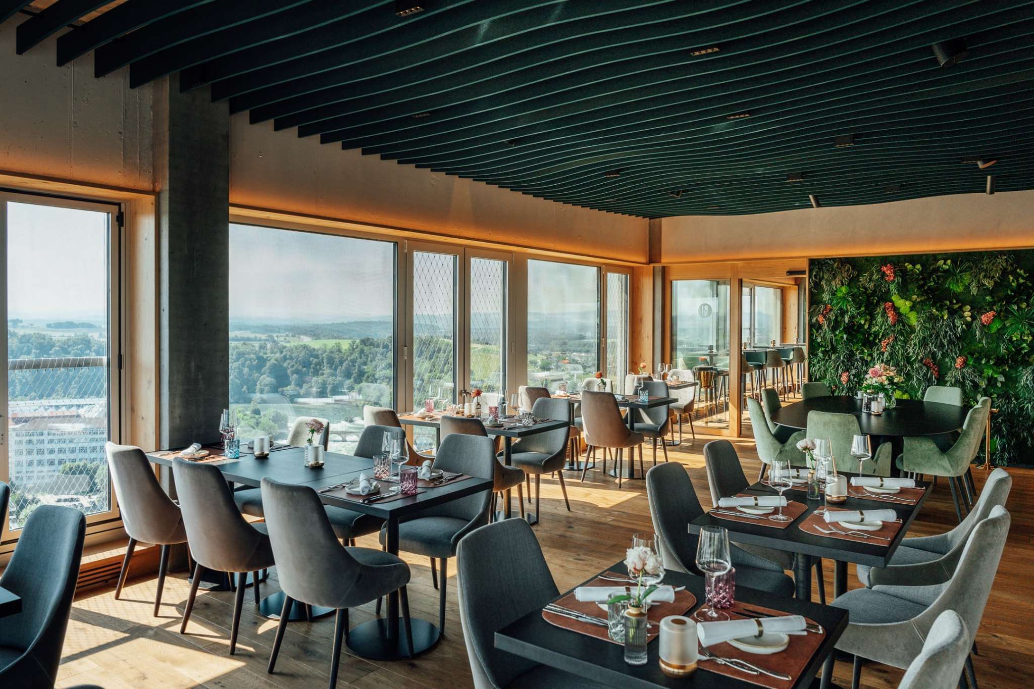 Ein besonderes Highlight ist das RIVI Roof Restaurant & Bar 136 Meter über dem Rheinfall.