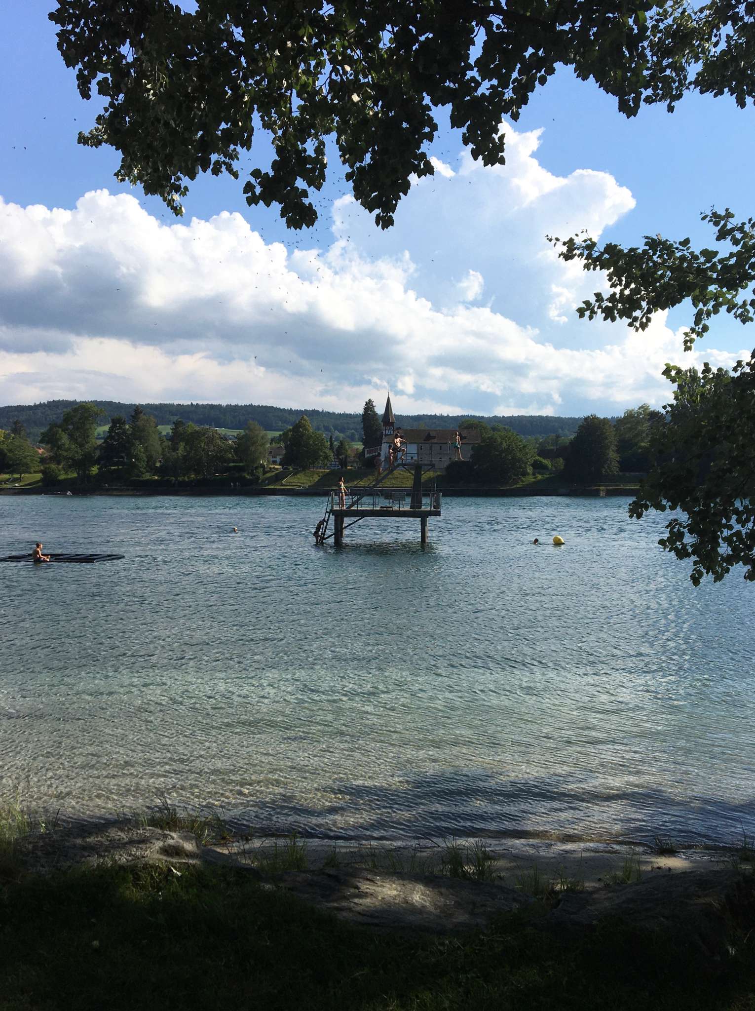 Dies ist ein Badeplatz im offenen, fliessenden Gewässer. Das Schwimmen ohne Erfahrung im Rhein ist nicht zu unterschätzen.