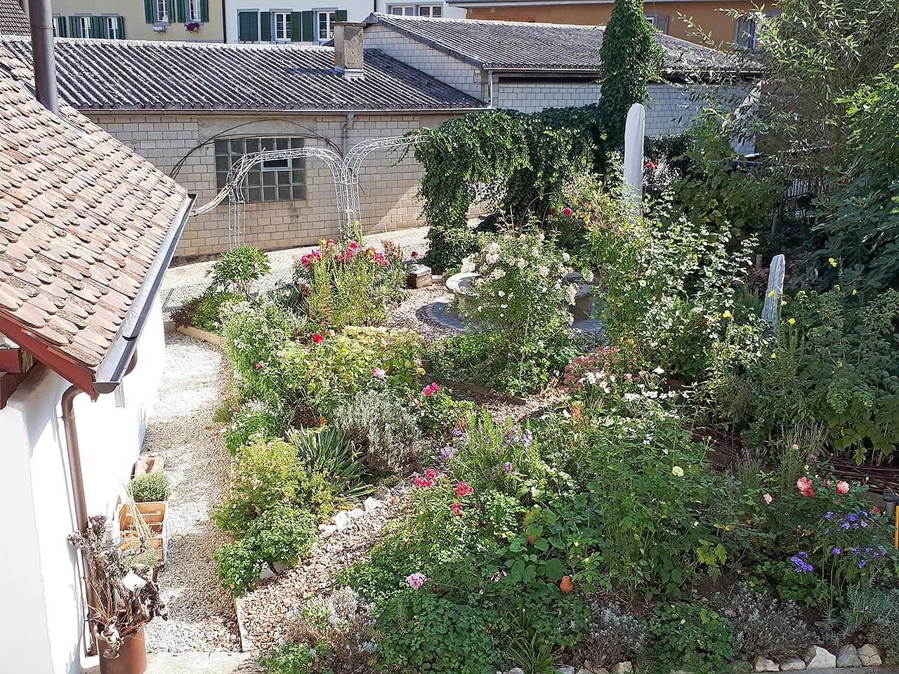 Zusammen mit dem gemütlichen kleinen Garten mit Steintisch und Sitzgelegenheiten fügt es sich wunderbar ins schöne Ortsbild von Wilchingen ein.