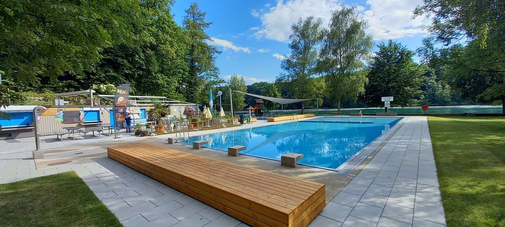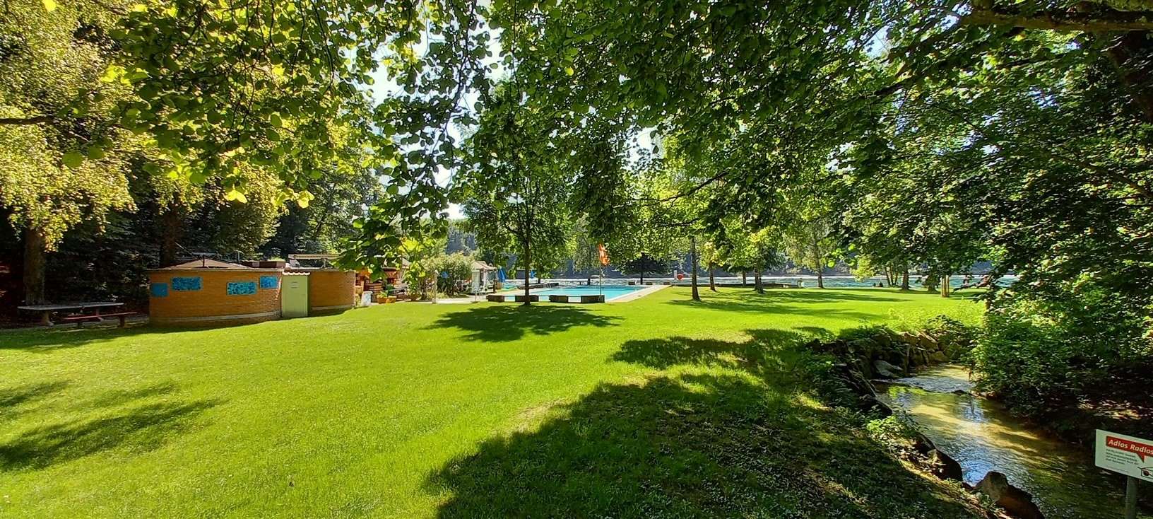 River pool on the Rhine in a quiet location in the forest with additional swimming and paddling pools.