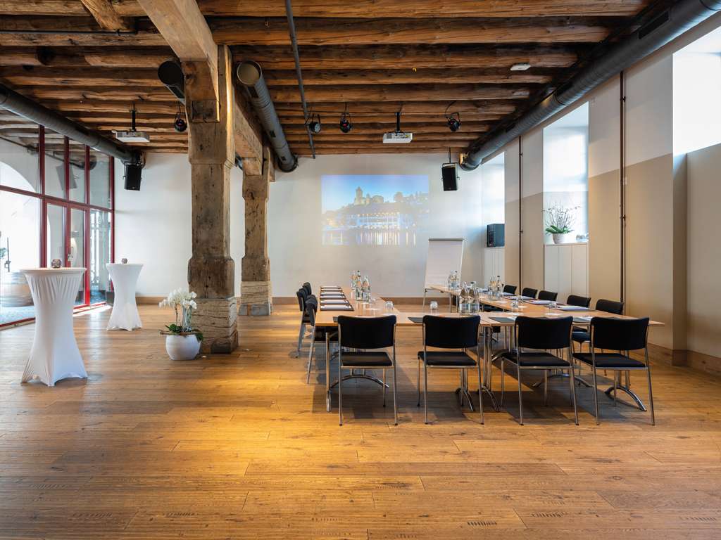 The Güterhof in Schaffhausen has developed from a warehouse into a popular restaurant. The pub with bar, lounge and terrace is located directly on the banks of the Rhine and has also made a name for itself as an event location.