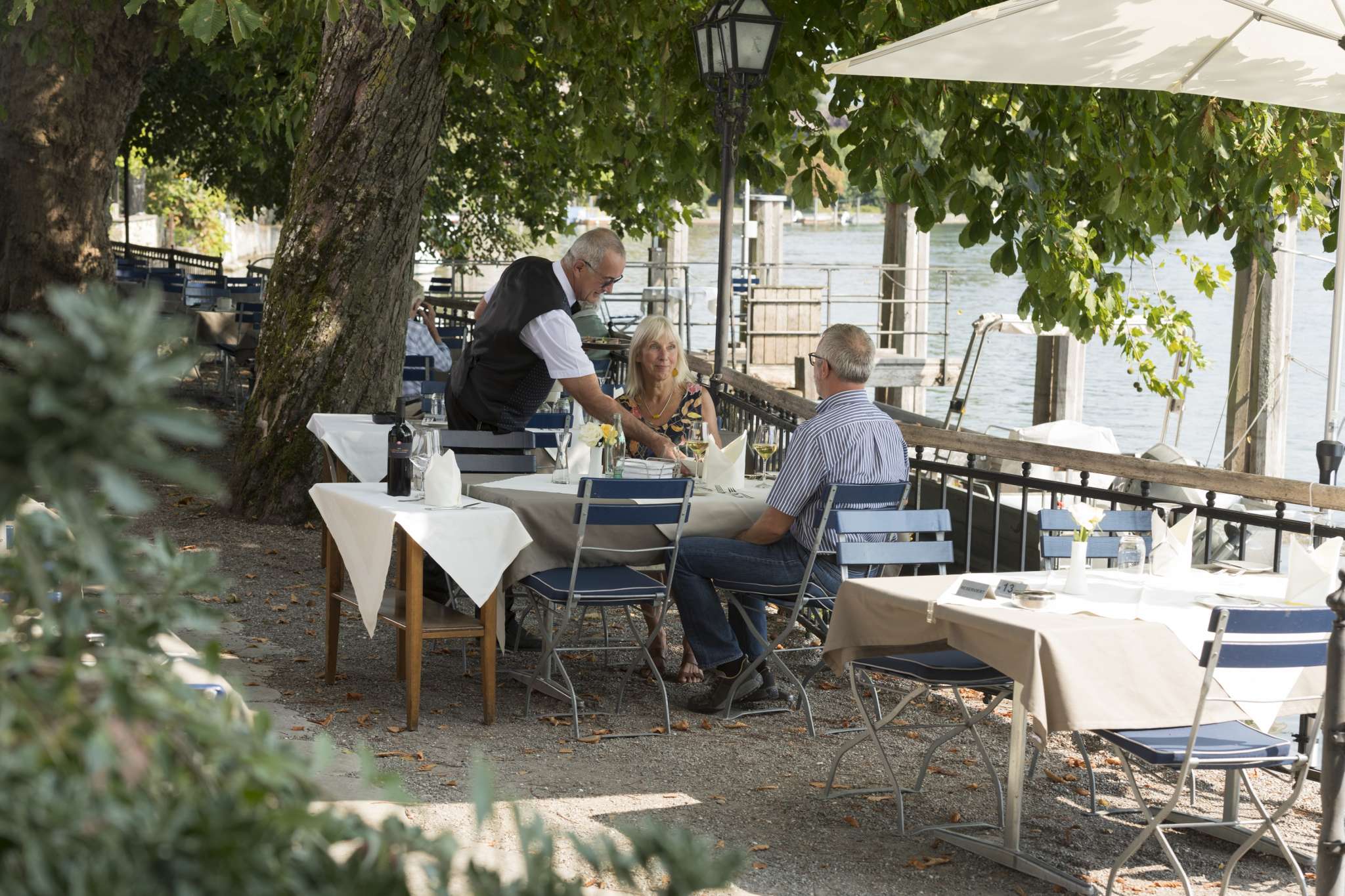 A few kilometres away from Schaffhausen the young Rhine flows directly past the windows of the Restaurant and Hotel Alte Rheinmühle. There in the midst of the wonderful scenery and in the shade of large chestnut trees, you can eat and sleep like a king. The “Alte Rheinmühle” is the ideal spot to lead our visitors into a dream world, for a while. Our goal is to have our guests satisfied, says host, Andreas Fischer. In the Alten Rheinmühle we place great importance on the authenticity of fine, regional, home-style cooking. Finest, internationally acclaimed wines or local wines from Blauburgunderland compliment this cuisine. Beautiful, comfortable rooms with original furniture from the last centuries round off the idyll on the Rhine. Not to forget the hospitality that is lived with body and soul.