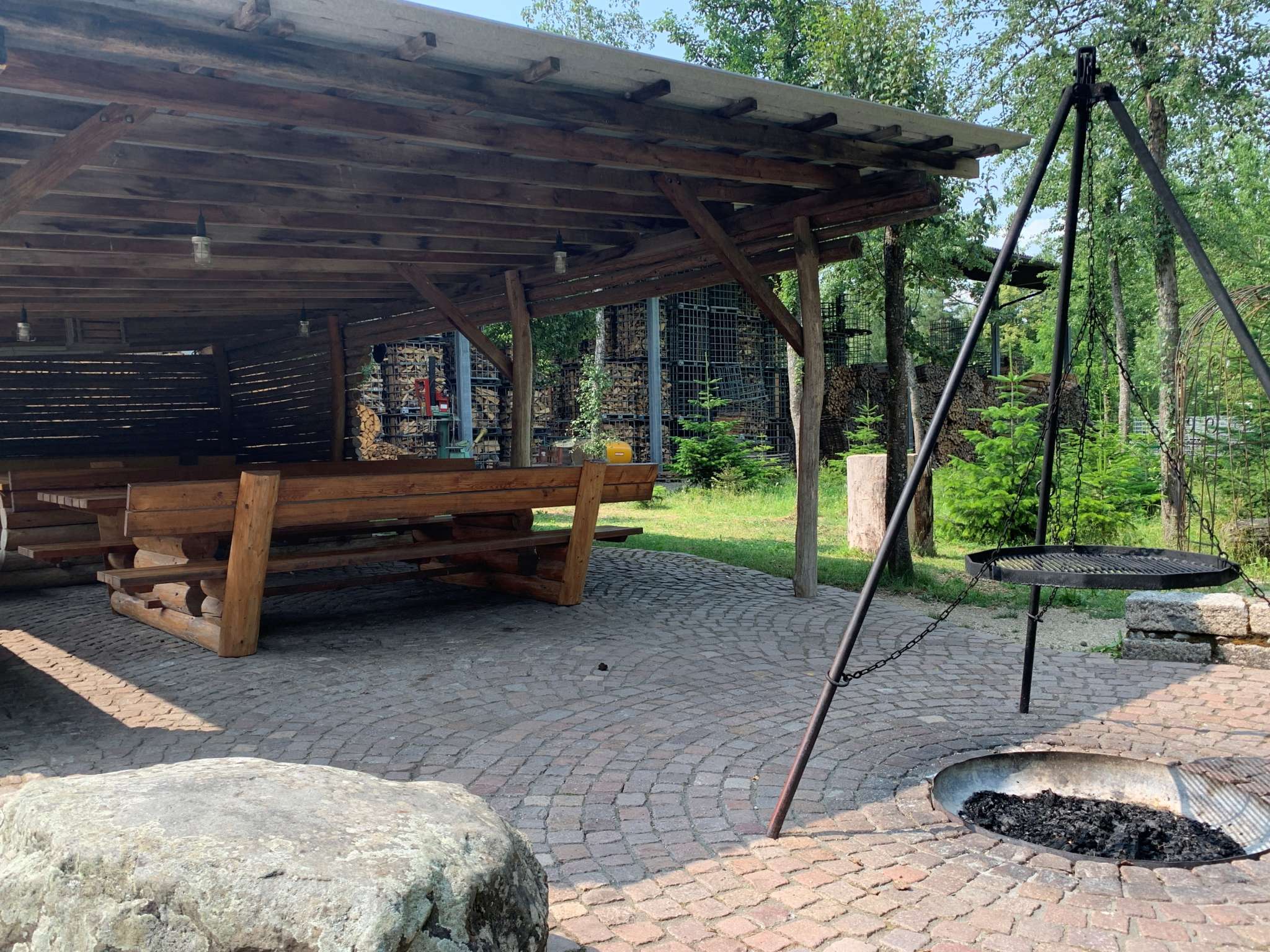 Covered seating area at the Engeweiher forestry magazine with barbecue area for 40 to 50 people.