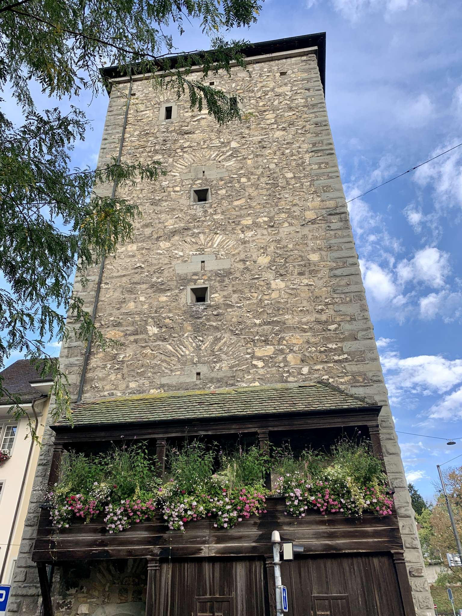 Schwabentor in Schaffhausen’s Old Town was first mentioned in records as "Neuturm" (New Tower) in 1361. It formed the northern side of the medieval town fortification against the Swabians. Today you enter the Old Town to Vorstadt through the Schwabentor. On the west facing side of Schwabentor a piece of the historical town wall with a battlement parapet still remains and the Finsterwaldturm serving as the corner tower has remained intact.