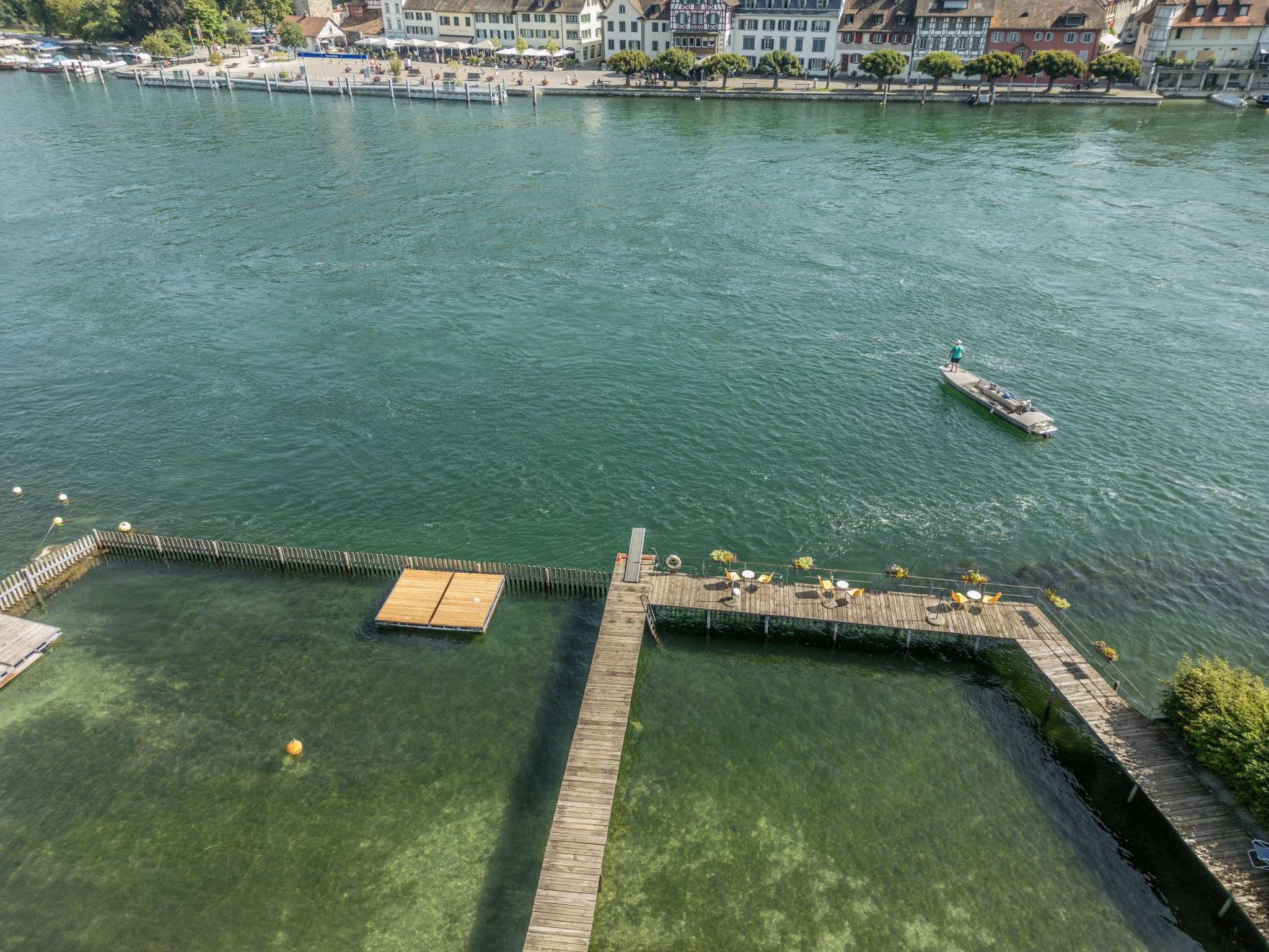 The "Espi Badi" is a small, pretty river bath with a kiosk and a beautiful view of Stein am Rhein and the Hohen Klingen.