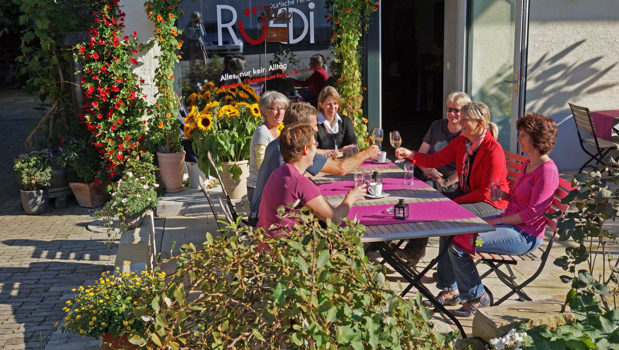 In our Wine Barrel Hotel we welcome the guests with a Grüezi and let them forget the everyday life. The surrounding vineyards with the picturesque villages invite you to extensive hikes and bike tours. A glass of wine from our own vineyard is of course part of the stay.