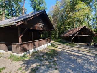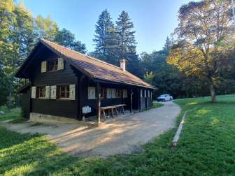 Gemütliche und gut ausgebaute Hütte im Reiat für Feiern und Veranstaltungen. Ruhig gelegen auf einer Lichtung im Wald und doch gut zu Fuss, mit Auto und Velo erreichbar.