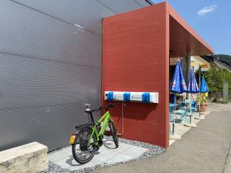 Kleiner Laden im Dorfkern, der frische Lebensmittel, regionale Produkte und Alltagsbedarf bietet – Treffpunkt für die Nachbarschaft. Während du auf den vollen Akku wartest, lädt der Dorfladen und das Restaurant Trämli zur Pause ein.