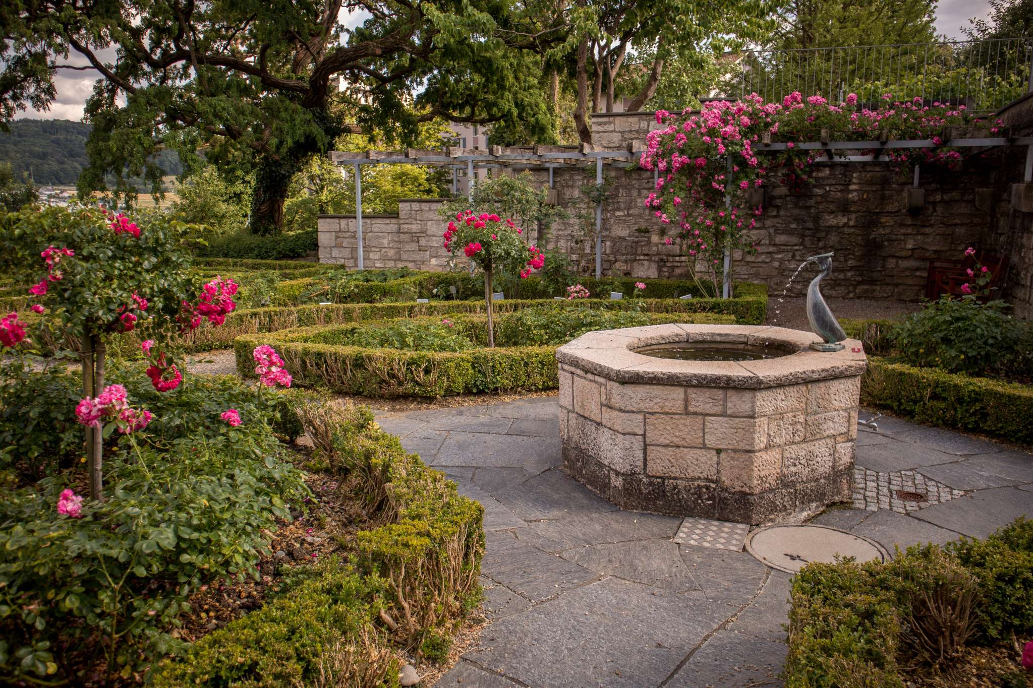 Le jardin de roses et de pivoines d'environ 300 mètres carrés a été magnifiquement aménagé par le "père des roses" suisse Dietrich Woessner comme jardin de style et d'essai. Les roses ont été replantées par les "Rosenfreunde Schaffhausen" en 2009. Juste en dessous des roses, plus de 90 variétés différentes de pivoines poussent depuis 2014. Juste à l'entrée du jardin, poussent des espèces sauvages à partir desquelles les nombreuses variétés ont été créées. Il existe également dix variétés que Sir Peter Smithers a sélectionnées au Tessin.