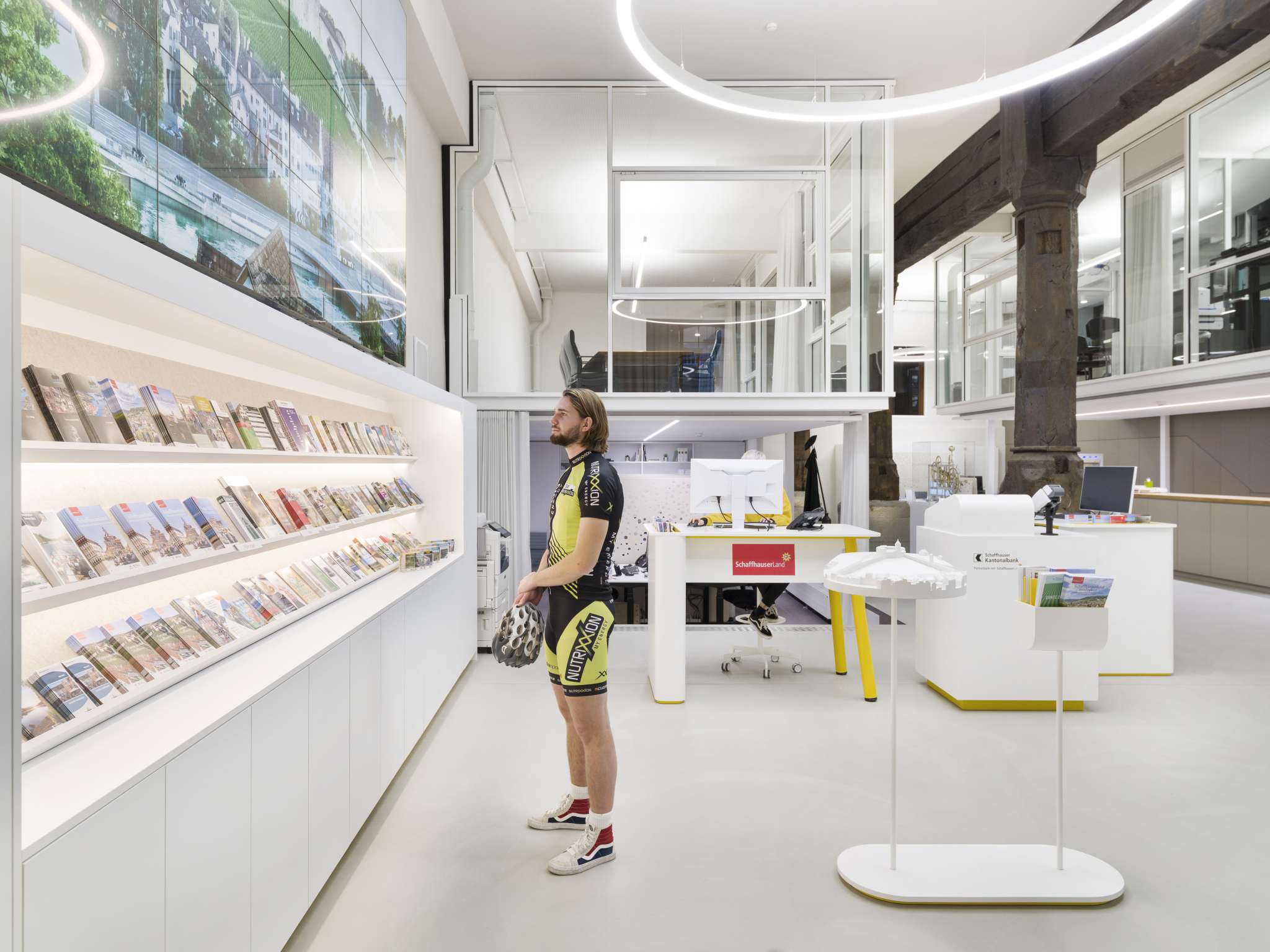 Venez nous rendre visite dans notre Vistor Centre au cœur de la vieille ville de Schaffhouse. Vous recevrez ici des conseils compétents et des tuyaux pour votre excursion dans le Schaffhauserland. Vous trouverez une sélection de brochures et de cartes de randonnée. Vous préférez vous informer vous-même ? Pas de problème, avec nos tablettes vous pouvez naviguer sur notre site web.