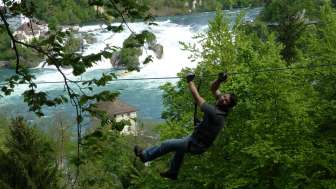 Im Adventure-Park Rheinfall garantieren wir ein unvergessliches Erlebnis in den Baumwipfeln mit einem atemberaubenden Blick auf den Rheinfall.