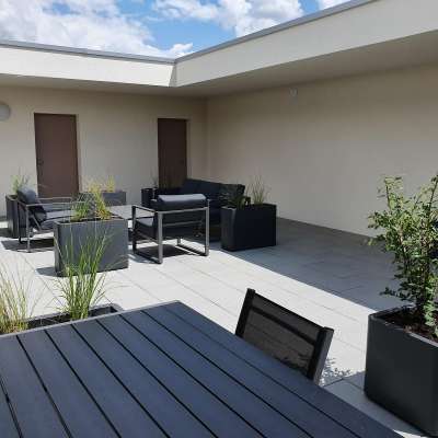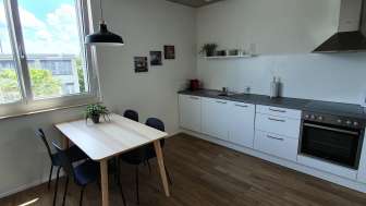 Die sechs Apartments befinden sich am grünen Stadtrand von Schaffhausen, nahe der Autobahnausfahrt SH-Schweizersbild (Parkplätze vorhanden).