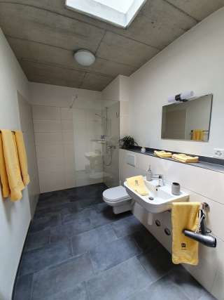 Die Bushaltestelle mit Verbindungen in die Altstadt und weiter zum Rheinfall befindet sich direkt vor der Haustüre. Auch Wander- und Fahrradwege führen in nächster Umgebung an den Apartments vorbei (abschliessbarer Veloraum vorhanden).