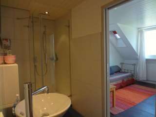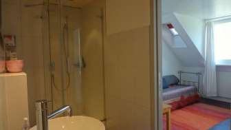 Im oberen Stock des Hauses sind 3 Zimmer mit eigener Dusche / WC für die Gäste bereit: Ein Studio mit 2 bis 4 Schlafgelegenheiten, ein Zimmer mit 2 Einzelbetten und ein Zimmer mit 1 Doppelbett. TV und Internet sind in allen Räumen vorhanden.