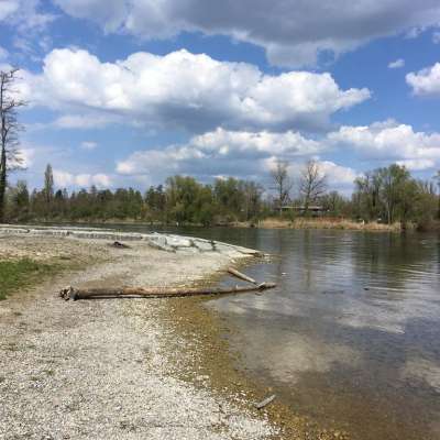 Schattenspendende Bäume, eine Wiese und ein Kiesstrand bieten Erholung im unteren Kantonsteil, auch die Toskana von Schaffhausen genannt. Ebenfalls hat es eine Feuerstelle und Picknick-Tische direkt beim Badeplatz. Dies ist ein Badeplatz im offenen, fliessenden Gewässer. Das Schwimmen im Rhein ohne Erfahrung ist nicht zu unterschätzen.