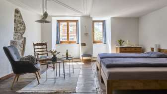 Das mittelalterliche Gebäude bietet in zwei geräumigen Zimmern Platz für bis zu vier Personen und ein Kleinkind.