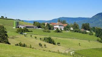 Unser Berghof thront über Hallau und seinen weitläufigen Rebbergen, schönen Wanderwegen und Bikerouten. Zudem laden das Hallauer Schwimmbad, das Ortsmuseum und das Weinbaumuseum zum Verweilen ein.