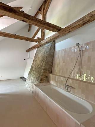Das Färberhaus gehört zum geschichtsträchtigen Gebäudekomplex aus dem Jahr 1518 und liegt direkt am Rhein im historischen Städtchen Diessenhofen. Heute verbindet die Wohnung historische Architektur mit einem ruhigen, modernen Design.