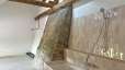 Im ersten Obergeschoss liegt das Schlafzimmer mit Doppelbett und einer kleinen Leseecke. Durch das Fenster fällt der Blick Richtung Rhein. Ein besonderes Detail ist die grosszügige, zum Raum offene Badewanne. Natürlich werden Handtücher, Shampoo und Duschgel zur Verfügung gestellt. Hier ist auch ein Arbeitsplatz eingerichtet, damit du deine Gedanken ins Notizbuch schreiben, etwas malen oder Postkarten versenden kannst.