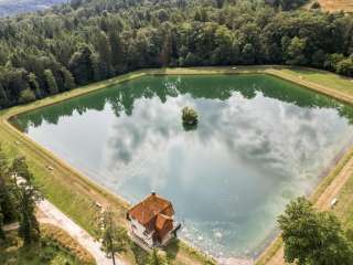 Der künstlich angelegte Weiher war 1907 das erste Pumpspeicherwerk der Schweiz und wurde dazumal praktisch in Handarbeit angelegt.