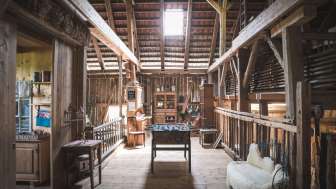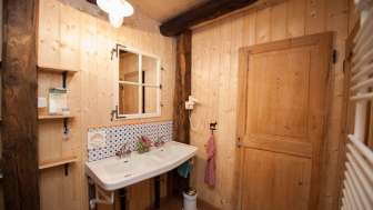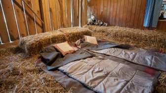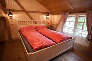 In der liebevoll eingerichteten rustikalen Scheune direkt am Bach befindet sich das 4-Bett-Zimmer und die zwei Strohräume oberhalb des Eselstalles auf dem Heuboden. Das Zimmer ist beheizt und verfügt über gute Matrazen und einen Kleiderschrank. Sie schlafen im Doppelbett oder in einem oder zwei Klappbetten.