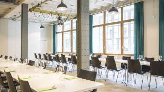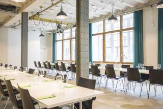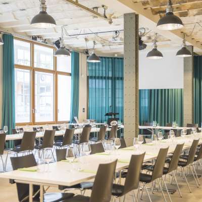Die Eventlocation auf dem SIG Areal am Rheinfall steht Ihnen für eine vielseitige Nutzung zur Verfügung. Ob Workshop, GV, Seminar oder eine private Feier – das einmalige Ambiente des Raums mit Industrieflair und moderner Ausstattung wird Sie begeistern. Es stehen zwei Beameranlagen, Rednerpult mit Mikrofon, Flipchart, Whiteboard und WLAN zur Verfügung. Die Bestuhlung des Saals erfolgt nach Ihren Wünschen. Für das Catering während Ihres Anlasses bietet Ihnen das angrenzende Restaurant Grünerbaum ein vielfältiges Angebot und geht gerne individuell auf Ihre Wünsche ein.