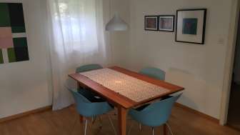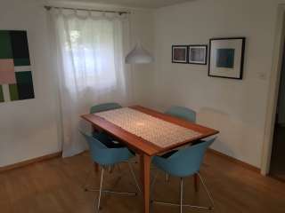 3 Zimmer-Haus. In liebevoll gepflegter Umgebung liegt dieses Häuschen in Neuhausen am Rheinfall. Es befindet sich in unmittelbarer Nähe des Waldes, 2 Minuten von Bus und DB, Schwimmbad und Einkaufsmöglichkeiten entfernt. Im Schlafzimmer befindet sich ein 140er Bett und im Wohnzimmer ist ein Schlafsofa vorhanden.