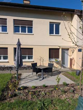 Ferienwohnung für zwei Personen. Für ein Kleinkind von 1-3 Jahren ist ein multifunktionales Kinderbett, mit Wickelauflage mit Bettwäsche vorhanden. Einzimmerwohnung mit eigenen Eingang. Separate kleine Küche und Bad. Hand - Dusch- und Geschirrtücher sowie Bettwäsche sind inklusive. Eigener Sitz- und Parkplatz vor dem Haus. W-Lan, Kabelfernsehen, DAB-Radio und WiFi Drucker freibenutzbar. Mitbenutzung vom abschliessbaren Einstellraum, mit der Möglichkeit E-Bikes aufzuladen. 55.-Sfr. pro Nacht + einmalige Reinigungsgebühr von 45.-Sfr.