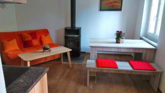 Auf Wunsch bieten wir auch Frühstück an. Die schmucke Wohnung hat alles was es braucht, Küche (mit Backofen, Kaffeemaschine, Wasserkocher), Bad, Schlafzimmer für 2 Personen, Wohn-Esszimmer mit einer Schlafcouch für 2 Personen. Es steht auch ein kleiner, eingezäunter Gartenbereich mit Tisch und Stühlen zur Verfügung.