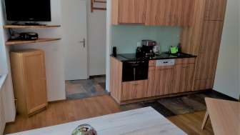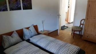 Kleine 2 Zimmer-Ferienwohnung in Siblingen. Auf Wunsch bieten wir auch Frühstück an. Die schmucke Wohnung hat alles was es braucht, Küche (mit Backofen, Kaffeemaschine, Wasserkocher), Bad, Schlafzimmer für 2 Personen, Wohn-Esszimmer mit einer Schlafcouch für 2 Personen. Es steht auch ein kleiner, eingezäunter Gartenbereich mit Tisch und Stühlen zur Verfügung.