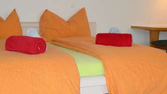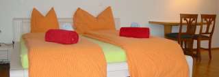 Unser modernes Gästehaus empfängt unsere Gäste mit 5 grosszügigen Einzel- und Doppelzimmern, allesamt mit Dusche/WC, TV und Internetverbindung. Zudem stehen 2 grosse Studios mit eigener Küche zur Verfügung.