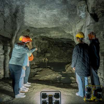 Heute können Sie als Besucher auf den Spuren der früheren Gipsbrecher rund 200 Meter tief ins Berginnere vordringen, bis Ihnen - wie einst den Bergleuten - ein kleines Seelein Einhalt gebietet.