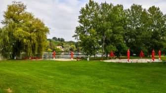 Im Strandbad, mit seiner grossen Liegewiese, mit viel Schatten und vielen Spielmöglichkeiten, verbringen Sie mit Ihren Kindern oder Freunden fröhliche Stunden. Das Baden im Rhein ist herrlich und ein grosses Vergnügen. Das Planschbecken und der Sandkasten sind vor allem bei den Kleinsten ein Spass. Zudem hat es einen schönen Spielplatz mit Klettermöglichkeiten. Einen Pingpongtisch und ein Töggeli-Kasten stehen für ein spannendes Match ebenfalls bereit. Das Beach-Volleyballfeld ist vor allem bei den Jugendlichen sehr beliebt.