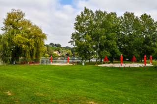 Die Camping-Anlage verfügt über moderne Sanitäranlagen, ein Restaurant mit einer schönen Sonnenterrasse und feinem Essen. Entspannen Sie sich und geniessen einen Sonnentag auf einer der vielen Sitzgelegenheiten direkt am Rhein.