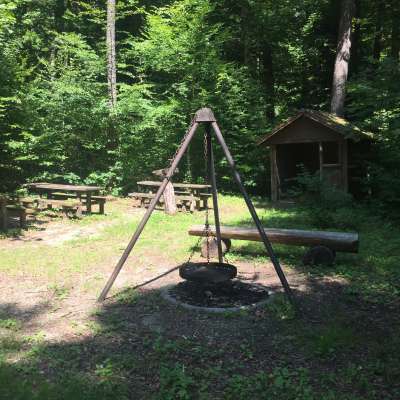 Der grosszügige Grillplatz auf dem Längenberg bietet reichlich Sitzmöglichkeiten, eine Feuerstelle und eine kleine Holzhütte.