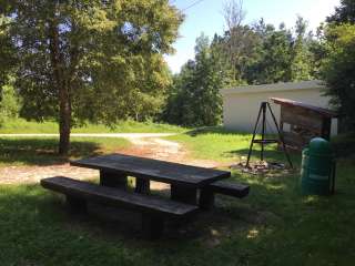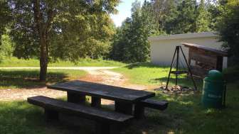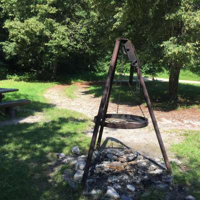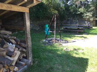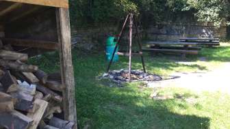 Der grosszügige Grillplatz hat eine Feuerstelle und diverse Sitzmöglichkeiten.