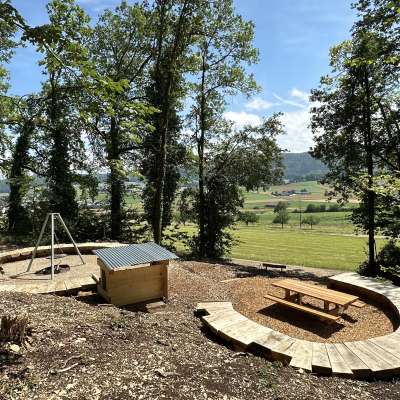 Neue, gemütliche Feuerstelle mit schöner Aussicht übers Chläggi.