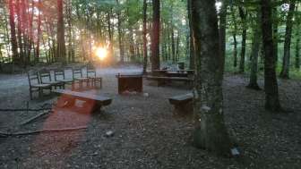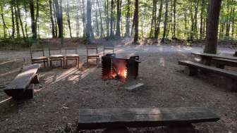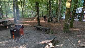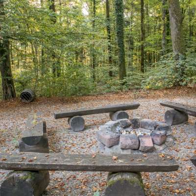 Die Grillstelle liegt beim Beringer Randenturm. Es hat eine Feuerstelle, mehrere Sitzmöglichkeiten und einen kleinen Spielplatz.